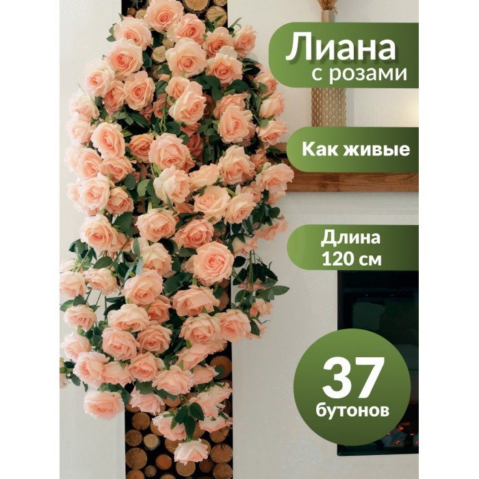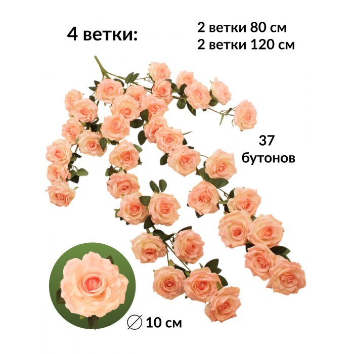 Цветы искуственные Розы каскадные (37 штук, 120 см, цветок 10 см) розовый 265454