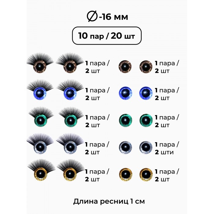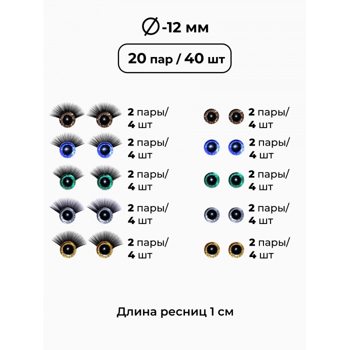 Глазки искорки+Глазки искорки с ресничками (40 штук глаза/40 штук глаз.ресн) 262657