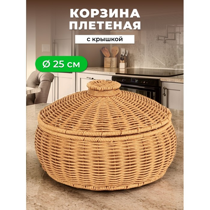Корзина плетеная с/крыш Кастрюля круг 250*250*10, 5mpl-fbo иск/ротанг, песочный 265676