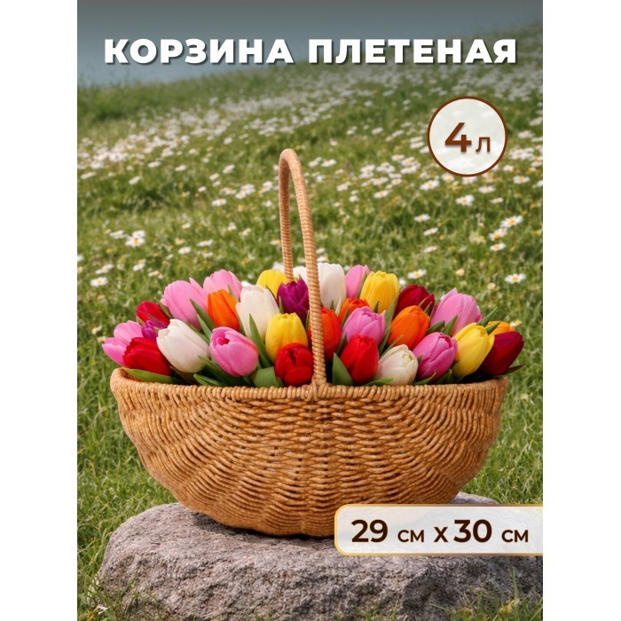Корзина плетеная с ручками Ракушка (29, 5*23, 5*12, 5 /29 руч ) иск/ротанг, песочный 266362