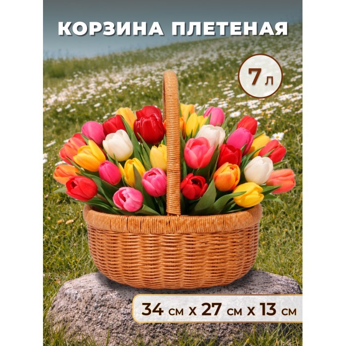 Корзина плетеная с ручками Лукошко большое M (34*27, 5*13 /32 руч ) иск/ротанг, песочный 266368