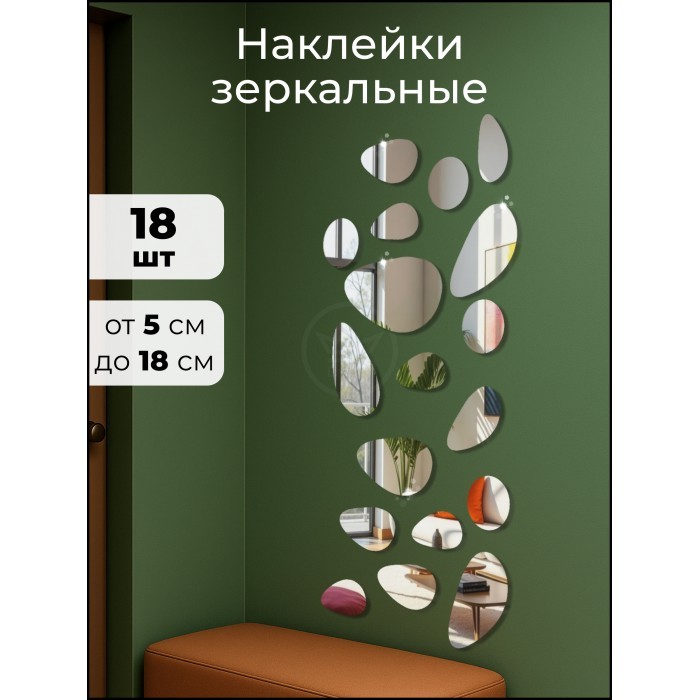 Интерьерные зеркальные наклейки Камни 18 шт 262185
