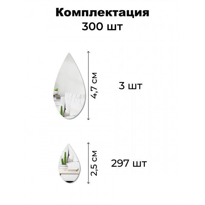 Интерьерные зеркальные наклейки Капли (300 шт) серебро 265975