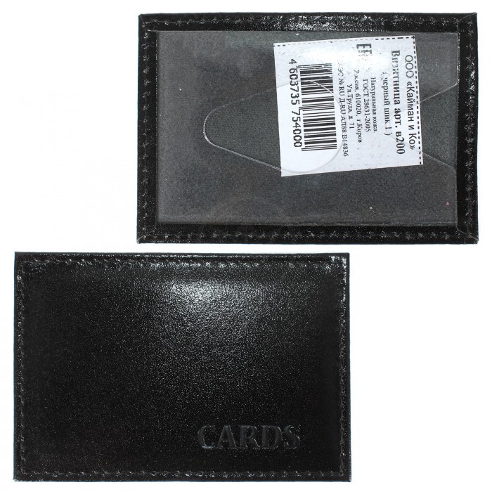 Обложка пропуск/карточка/проездной Croco-В-200 натуральная кожа черный шора (1000) 221729