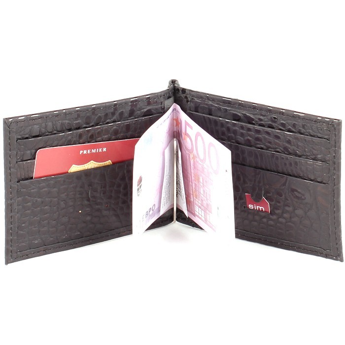 Зажим для купюр Premier-М-54 натуральная кожа (8 карм+карм под мелочь) черный кайман (126) 133977