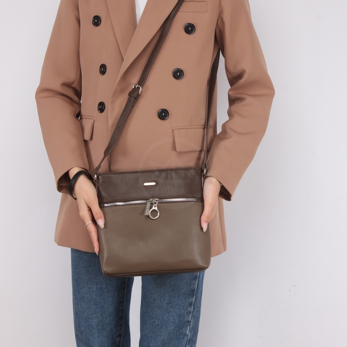 Сумка женская искусственная кожа DJ-6600-1-D.TAUPE/D.BROWN, 1отд, плечевой ремень, (УЦЕНКА/ДЕФЕКТ: сдир кож/зама у дна) капучино SALE 240793