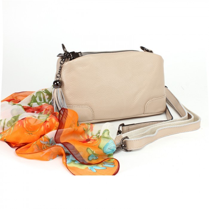 Сумка женская натуральная кожа GU 163-5555, 3отд, плечевой ремень, бежевый SALE 235055